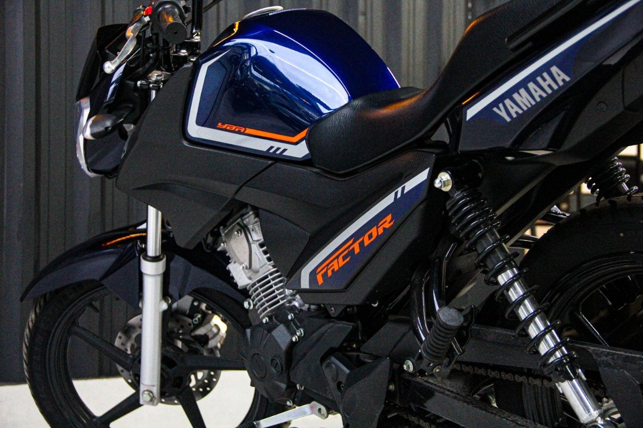 Yamaha Factor 150 2024 É uma motocicleta versátil e econômica, ideal para o uso urbano. Ela se destaca pelo motor BlueFlex 150cc. Além disso, possui suspensão traseira reforçada para maior conforto e freios UBS para maior segurança. Painel 100% digital com indicador de marcha e função ECO, que auxilia na condução econômica. Freios UBS que distribuem a frenagem entre as rodas. Consumo médio de 45 km/l com gasolina, e autonomia de quase 700 km com um tanque de 15,7 litros.